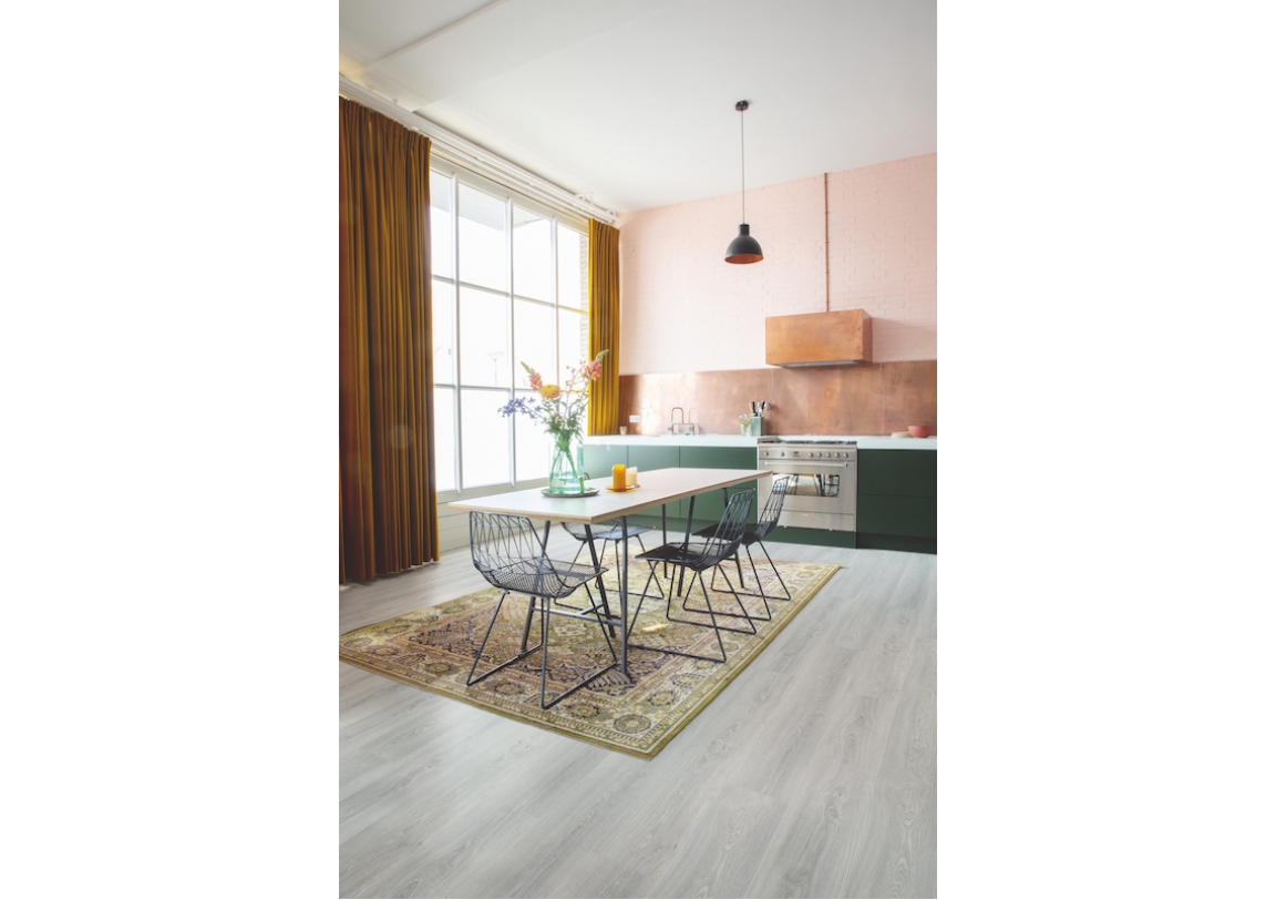 Технология производства винилового ламината Quick•Step SPC Vinyl Atmosphere обеспечивает практичность нового пола и делает его невосприимчивым к резким температурным перепадам.